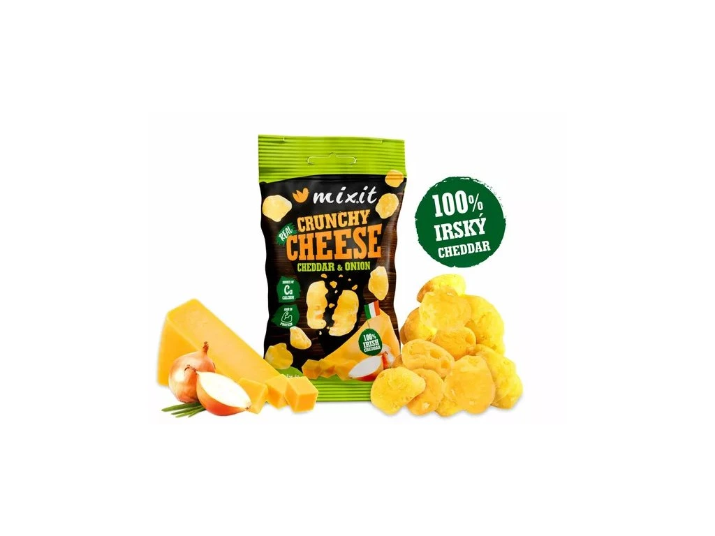 Irské sýry pravidelně vyhrávají ceny na mezinárodních soutěžích a tenhle křupavý irský cheddar u nás zvítězil na plné čáře! Irsko má ideální podmínky pro chov krav díky svým nekonečným zeleným pastvinám. Vzali jsme tedy kvalitní irský cheddar s jeho specifickou plnou chutí, šetrně jej usušili speciálním procesem a přidali cibuli. Kolik? Přece tak akorát, aby stále vynikla chuť sýru. Výsledkem je extra křupavý snack do kapsy plný bílkovin a vápníku. Neobsahuje nic jiného než irský cheddar a opravdovou cibuli, je tedy bez přidaných umělých látek a navíc přirozeně bezlepkový.